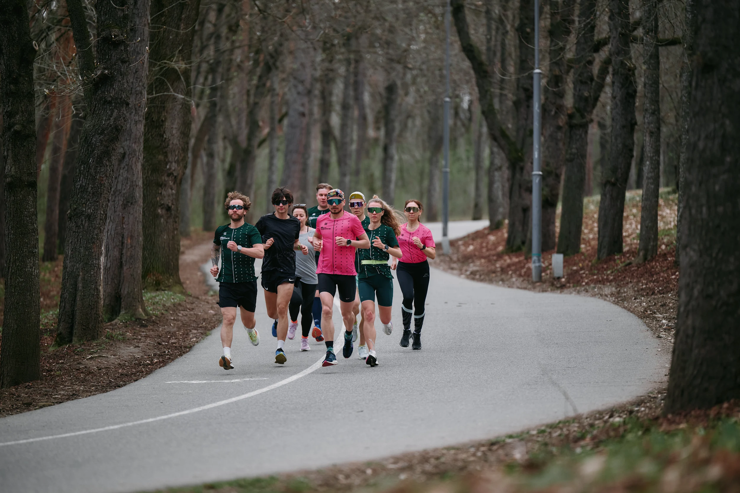 Все пологие участки и спуски будем бежать в комфортном темпе группы, а в горку двигаться бодрым шагом.