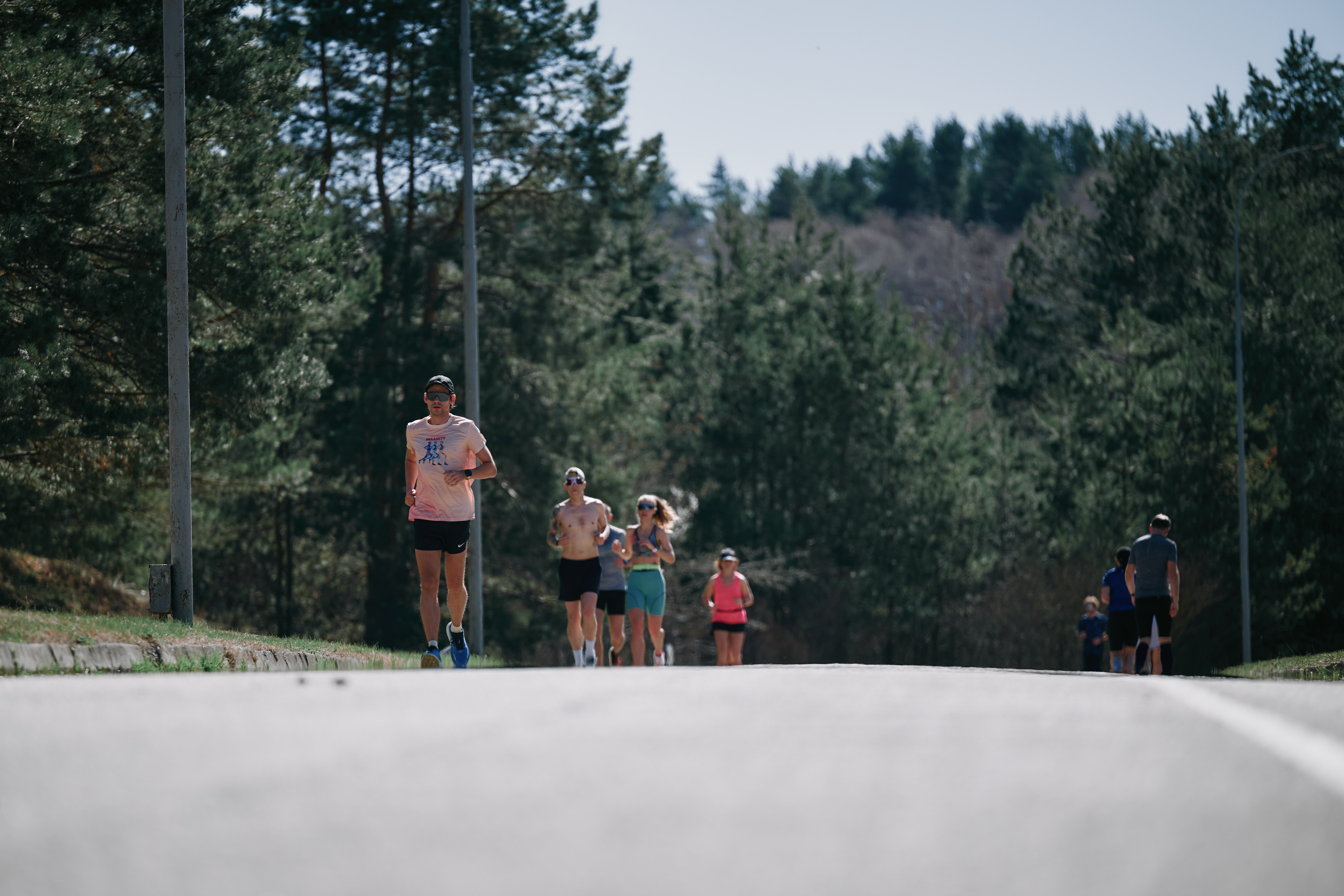 Дистанция круговая (около 11 км), примерно половину которой (все горки) мы идем бодрым шагом, пологие участки и спуски бежим группами в комфортном темпе. Для новичков есть укороченный маршрут в районе 7,5 км.