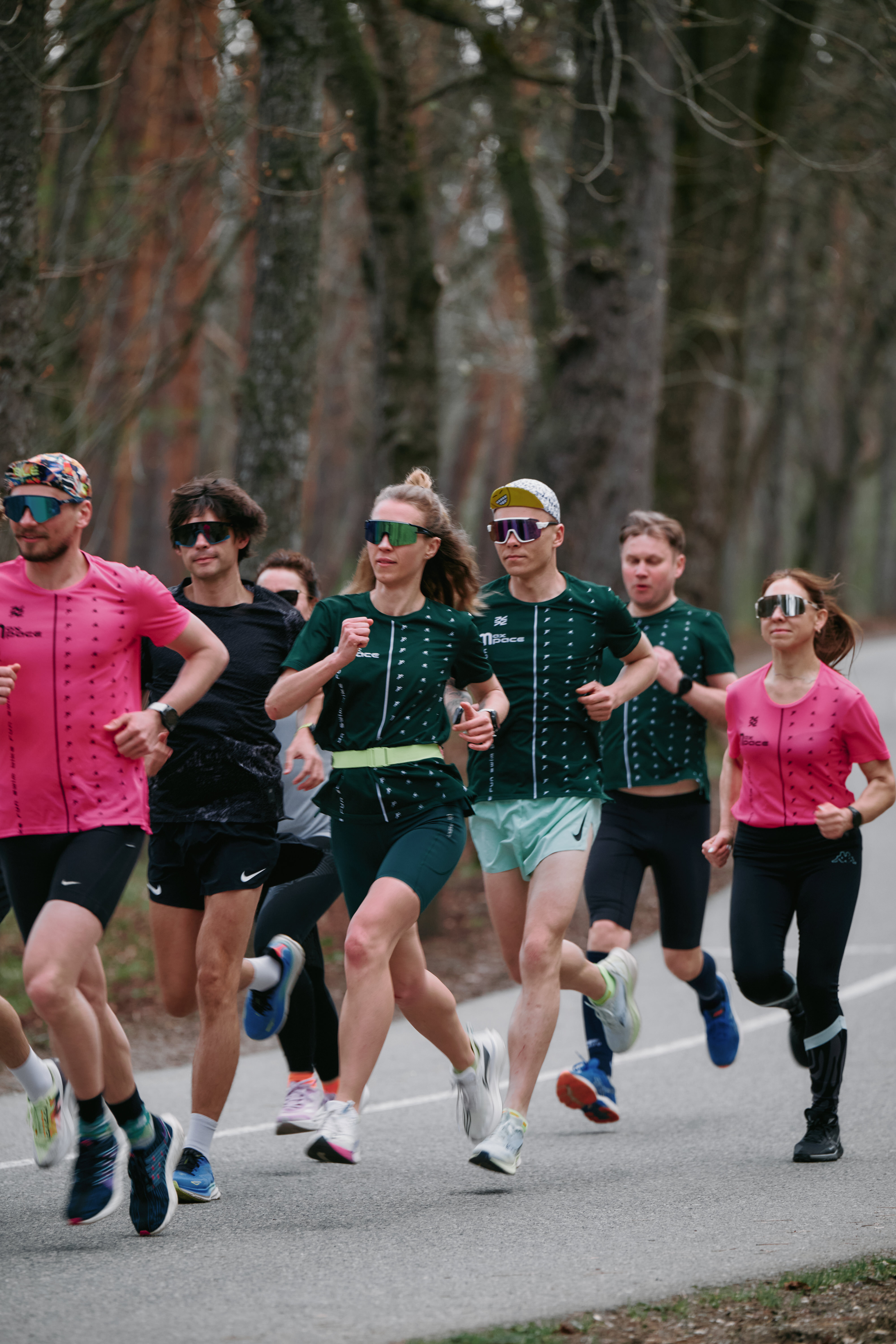 Дистанция круговая (около 11 км), примерно половину которой (все горки) мы идем бодрым шагом, пологие участки и спуски бежим группами в комфортном темпе. Для новичков есть укороченный маршрут в районе 7,5 км.