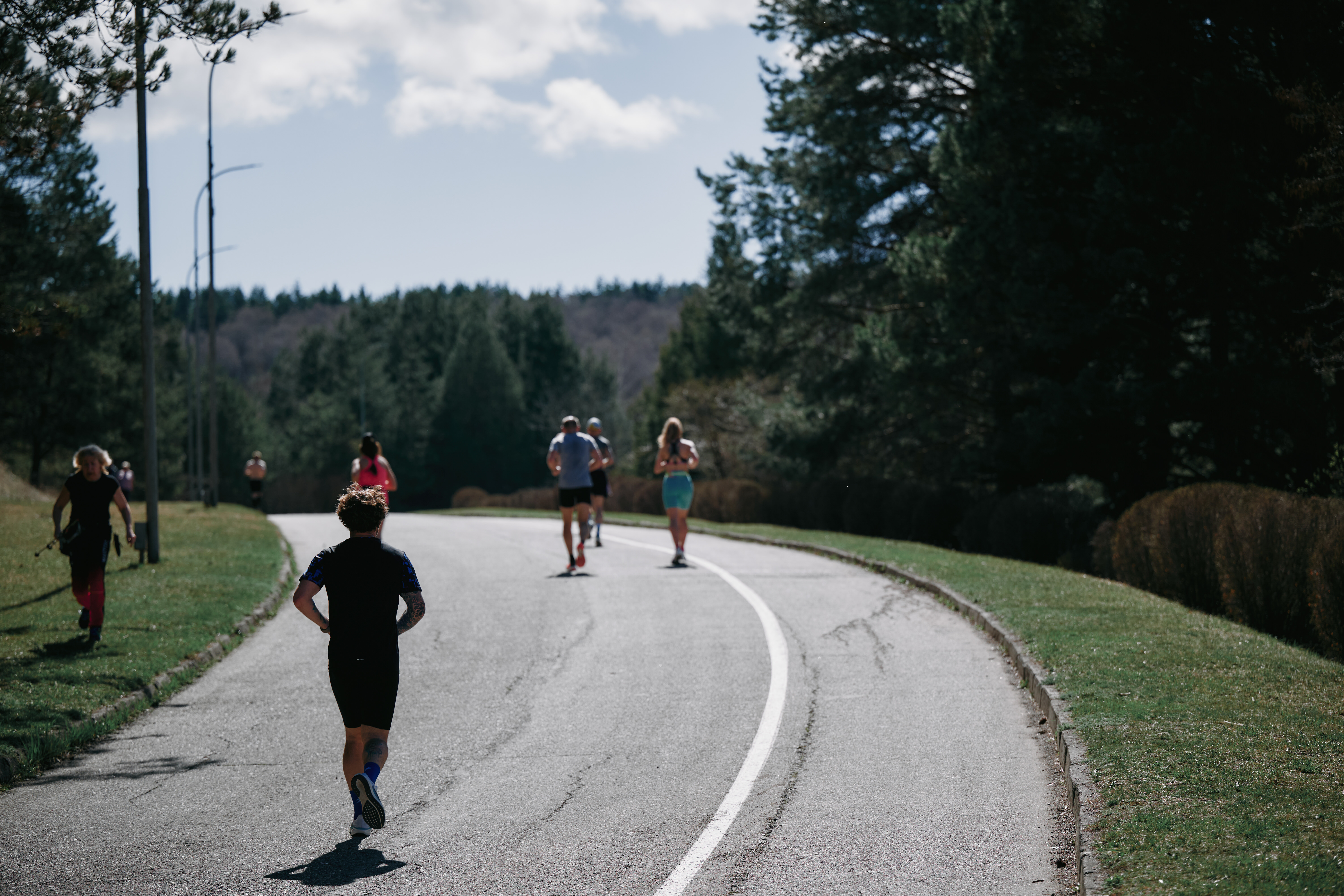 Дистанция круговая (около 11 км), примерно половину которой (все горки) мы идем бодрым шагом, пологие участки и спуски бежим группами в комфортном темпе. Для новичков есть укороченный маршрут в районе 7,5 км.